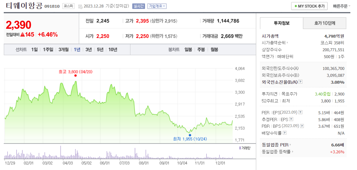 티웨이항공 주가 분석