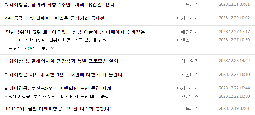 티웨이항공 주식 결론