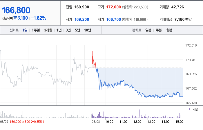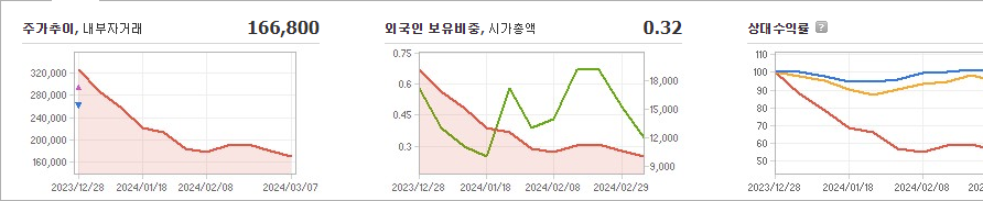 DS단석은 현재 주가가 166,800원이며 전일 대비 -3,100원 하락한 상태입니다. 한승욱(외 3인)은 DS단석의 주주로서 40.64%의 지분을 소유하고 있습니다. DS단석은 화학 기업으로, 현재 주가는 166,800원이며 시가 총액은 9777억 원입니다. 발행 주식수는 5,861,404주이며 외국인 보유 비중은 0.32%입니다. 장중 거래량은 43,874주이며 매출액은 8,111억 원입니다.