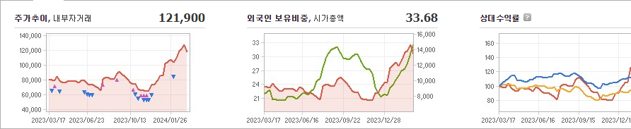 아프리카TV의 현재 주가는 121,900원이며 전일 대비 원의 모습을 보이고 있습니다. 주주현황을 살펴보면 쎄인트인터내셔널(외 6인)이 지분 26.33%를 소유하고 있습니다. 아프리카TV는 인터넷 서비스 기업으로, 장중 기준 주가는 121,900원입니다. 시가 총액은 1조4035억 원이며 발행 주식수는 11,494,767주입니다. 외국인 보유 비중은 33.68%이며, 장중 거래량은 229,408을 기록했습니다. 또한, 매출액은 2,473억 원을 달성했습니다.