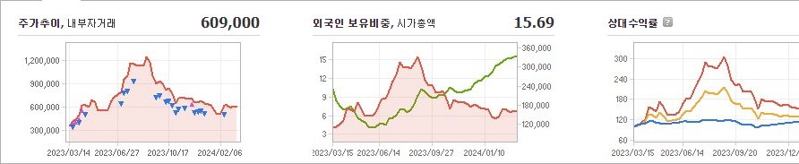 에코프로의 현재 주가는 609,000원이며 전일 대비 -3,000원의 변동을 보이고 있습니다. 주주현황을 살펴보면 이동채(외 10인)이 지분의 25.58%를 소유하고 있습니다. 에코프로는 전자 장비 및 기기 기업으로 장중 기준으로 주가는 609,000원이고 시가 총액은 16조32억 원입니다. 발행 주식수는 26,627,668주이며 외국인 보유 비중은 15.69%입니다. 장중 거래량은 171,519주를 기록했고, 매출액은 59,854억 원입니다.