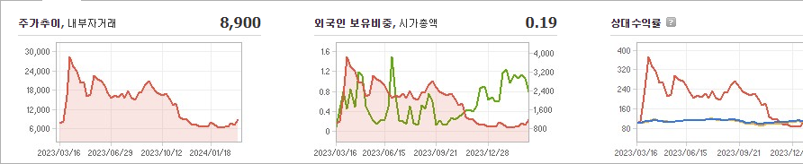 자이글의 현재 주가는 8,900원이며 전일 대비 -56.90원의 변동을 보이고 있습니다. 이진희(외 2인)은 주주현황에서 지분 68.24%를 소유하고 있습니다. 자이글은 내구소비재 기업으로 장중 주가는 8,900원입니다. 시가 총액은 1143억 원이며 발행 주식수는 13,530,910주입니다. 외국인 보유 비중은 0.19%이며 장중 거래량은 2,002,181주를 기록했습니다. 또한, 자이글은 매출액으로 31억 원을 달성했습니다.