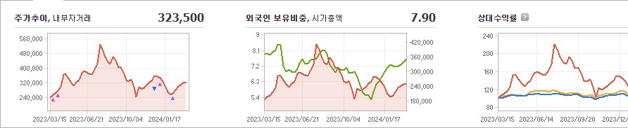 포스코퓨처엠의 현재 주가는 323,500원으로, 전일 대비 -11,000원 하락한 상태입니다. 주주 구성을 살펴보면 포스코홀딩스(외 4인)이 지분의 62.54%를 소유하고 있습니다. 포스코퓨처엠은 화학 기업으로, 현재 주식 시가 총액은 24조5171억 원이며 발행 주식수는 77,463,220주입니다. 외국인 보유 비중은 7.90%이며, 장중 거래량은 636,662주를 기록했습니다. 또한, 매출액은 36,140억 원으로 달성되었습니다.