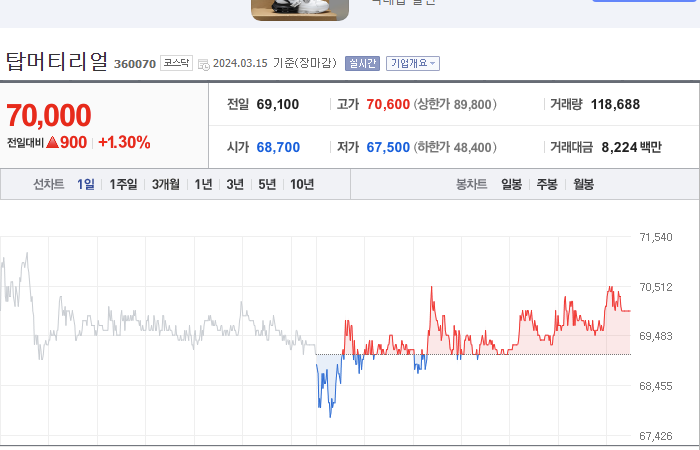 아래 글은 탑머티리얼(Top Material) 주식에 대한 전망과 목표 주가, 기업 정보에 대해 설명합니다. 주식 투자에서 가장 중요한 것은 미래의 기업 가치를 예측하고 선제적으로 행동하는 것입니다. 따라서 투자 대상을 결정하기 전에 현재 기업의 상황과 수치를 검토하는 것이 필요합니다. 아래에서는 탑머티리얼 주식의 주요 현황과 투자 정보를 확인할 수 있으며, 투자에 도움이 될 자료들을 모았습니다. 전체 글을 읽어보시고 투자에 도움이 되길 바랍니다.