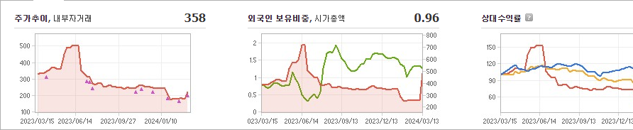 판타지오의 현재 주가는 358원이며 전일 대비 원의 모습을 보이고 있습니다. 주주현황을 살펴보면 아티스트(외 2인)이 지분 23.32%를 소유하고 있습니다. 판타지오는 미디어 기업으로 장중 기준으로 주가는 358원입니다. 시가 총액은 390억 원이며 발행 주식수는 117,785,294주입니다. 외국인 보유 비중은 0.96%이며 장중 거래량은 83,815,911주를 기록했습니다. 매출액은 310억 원을 달성했습니다.